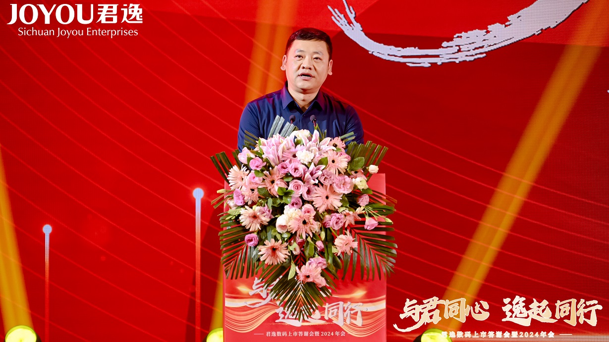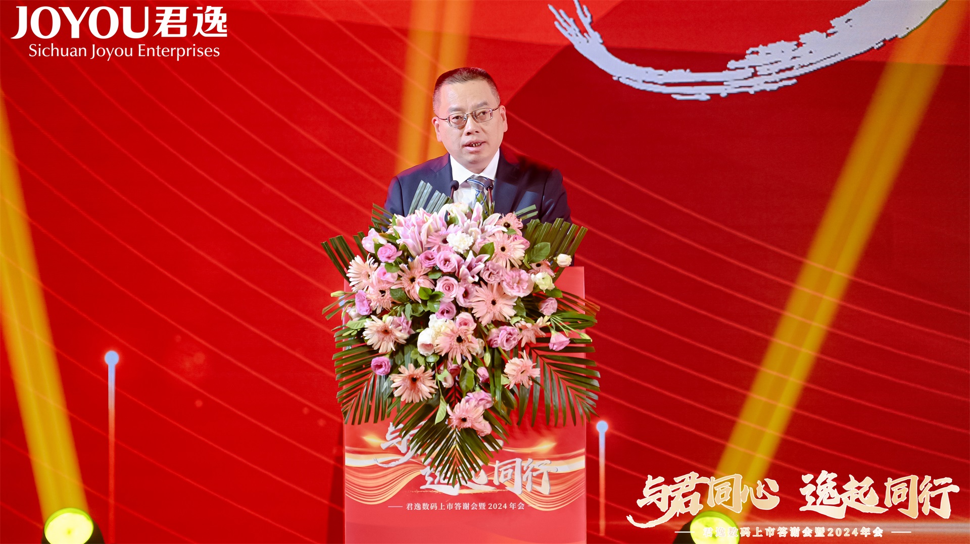 曾立軍董事長在致辭環(huán)節(jié),總結(jié)了公司于2023年成功上市的發(fā)展歷程,他表示正如他于公司成立十五周年時(shí)所說的“我們的團(tuán)隊(duì)可能不是最聰明的,但是我們都有著一個(gè)共同的夢想。”正是君逸全體員工上下一致的同心協(xié)力,認(rèn)準(zhǔn)目標(biāo)不放松的韌勁,促使君逸不斷踏上更廣闊的發(fā)展舞臺(tái)。