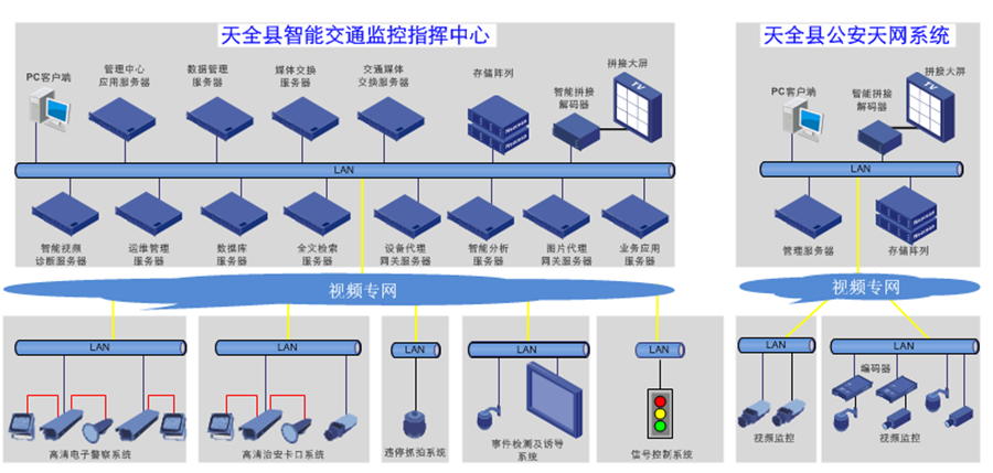 天全縣地處川藏公路(國(guó)道318線),新的318國(guó)道將橫穿整個(gè)天全新城,隨著新雅康高速的建設(shè),加之天全縣災(zāi)后旅游城市的發(fā)展,勢(shì)必會(huì)導(dǎo)致整個(gè)城市機(jī)動(dòng)車數(shù)量的快速增長(zhǎng),如何開發(fā)建設(shè)智能交通系統(tǒng),最大限度挖掘現(xiàn)有交通設(shè)施潛力,遏制交通違章,保證交通安全,減少交通延誤的需求非常迫切。本項(xiàng)目建設(shè)內(nèi)容涉及電子警察子系統(tǒng)、治安卡口子系統(tǒng)、高清監(jiān)控子系統(tǒng)、智能違停抓拍子系統(tǒng)、事件檢測(cè)系統(tǒng)、大屏幕子系統(tǒng)等多方位,多功能建設(shè)。我公司結(jié)合項(xiàng)目自身情況,提供的智能交通綜合管控平臺(tái)以不同性質(zhì)、不同特點(diǎn)的事件管理為需求依據(jù),以整合的各個(gè)交通管理在用系統(tǒng)的功能和數(shù)據(jù)服務(wù)為檢測(cè)、監(jiān)控、調(diào)控的手段,以工作預(yù)案為靈活應(yīng)變、快速反應(yīng)的保障,切實(shí)發(fā)揮了智能化交通管理在現(xiàn)代交通管理工作中的作用,滿足了現(xiàn)代化交通管理的要求。