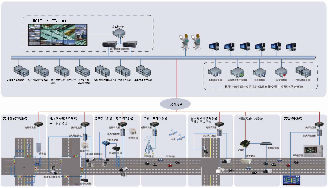 本項(xiàng)目建設(shè)內(nèi)容涵蓋:智能交通信號(hào)控制系統(tǒng)、電子警察兼卡口系統(tǒng)、違停抓拍系統(tǒng)、不禮讓行人系統(tǒng)、卡口測(cè)速系統(tǒng)、視頻監(jiān)控系統(tǒng)、高空監(jiān)控系統(tǒng)、視頻流量檢測(cè)系統(tǒng)、信息發(fā)布系統(tǒng)、行人闖紅燈預(yù)警系統(tǒng)、數(shù)據(jù)機(jī)房配套等12個(gè)前端子系統(tǒng)。整個(gè)系統(tǒng)由前端子系統(tǒng)、中心處理單元、中心平臺(tái)組成,此次信號(hào)控制系統(tǒng)接入全市統(tǒng)一的信號(hào)控制平臺(tái)。