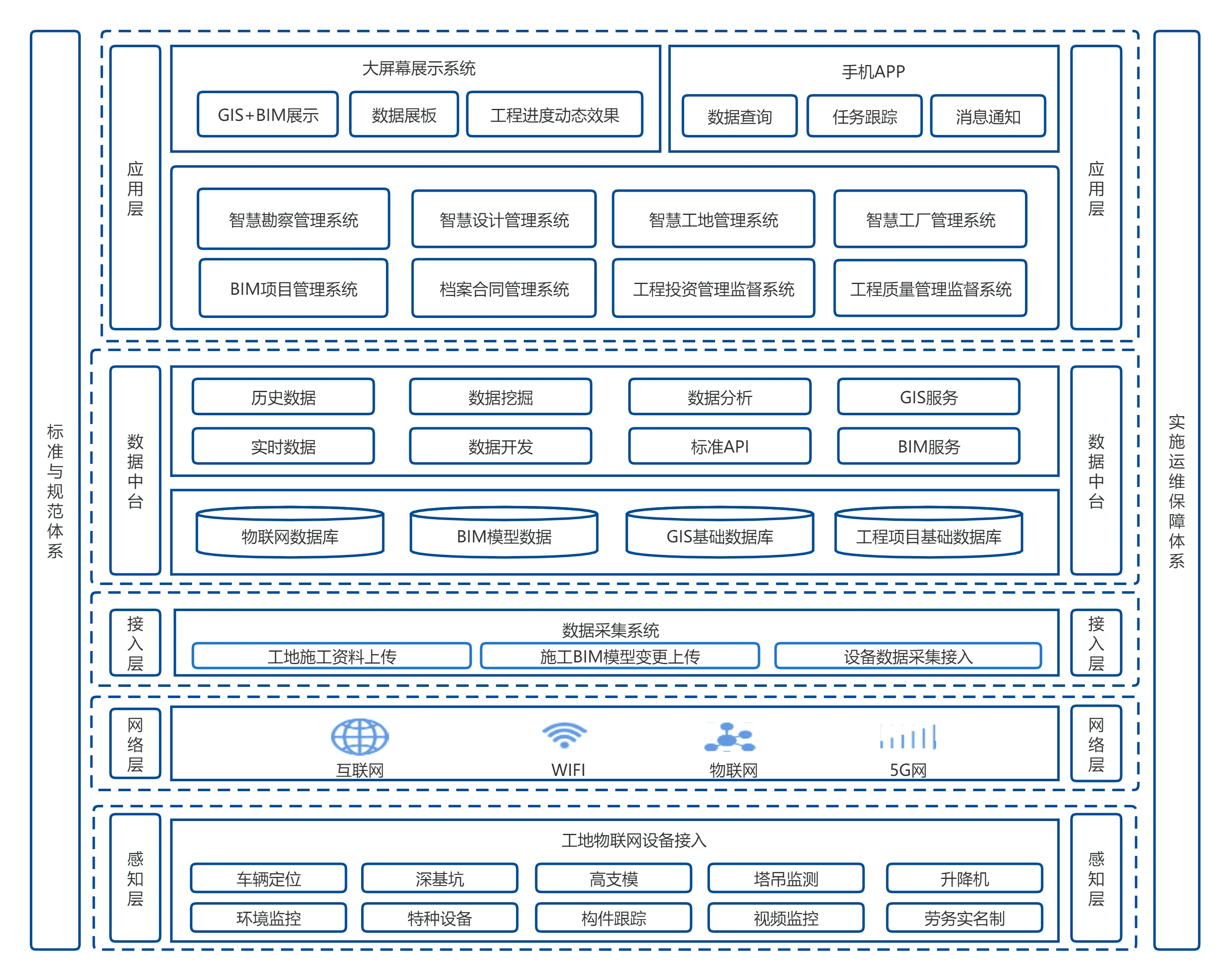 城市基礎(chǔ)設(shè)施建設(shè)是推進城市化進程必不可少的物質(zhì)保證,是實現(xiàn)國家或區(qū)域經(jīng)濟效益、社會效益、環(huán)境效益的重要條件,對區(qū)域經(jīng)濟的發(fā)展具有重要作用,全國各地方政府、企業(yè)、務(wù)工人員紛紛踴躍參與。為提高城市基建品質(zhì),國家對城市基建工程項目在安全、環(huán)保、質(zhì)量、管理、信息化上的要求提升至新高度。對工程建設(shè)單位而言,這樣的要求以目前的工作流程、方式、管理水平來說難以達到。隨著《國務(wù)院辦公廳關(guān)于促進建筑業(yè)持續(xù)健康發(fā)展的意見》(國辦發(fā)[2017]19號)、《建筑業(yè)發(fā)展“十三五”規(guī)劃》、《住房城鄉(xiāng)建設(shè)科技創(chuàng)新“十三五”專項規(guī)劃》等國家各項政策不斷落地,BIM、智慧工地、大數(shù)據(jù)、互聯(lián)網(wǎng)+、虛擬全息、增強交互、人工智能等技術(shù)得到廣泛應(yīng)用,建筑產(chǎn)業(yè)轉(zhuǎn)型升級的方向也開始明確。