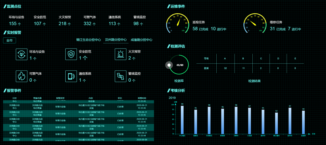 地下綜合管廊是一個(gè)線性密閉空間,收容的管線種類多樣,而且管廊自身功能使用的動(dòng)力、照明、通風(fēng)、排水等設(shè)備繁多,具備長(zhǎng)度長(zhǎng)、分布廣、設(shè)施多等特性,地下綜合管廊是城市的地下生命線,管廊的安全運(yùn)行關(guān)系城市居民和企業(yè)的正常生產(chǎn)、工作和生活。管廊內(nèi)需要安裝大量智能物聯(lián)網(wǎng)感知設(shè)備,值班人員可及時(shí)發(fā)現(xiàn)管廊內(nèi)的異常情況,管廊分布在城市各地,為了對(duì)管廊運(yùn)行狀態(tài)的統(tǒng)一監(jiān)控,需要一套能夠完成海量數(shù)據(jù)采集、綜合報(bào)警、動(dòng)態(tài)監(jiān)控和統(tǒng)一展示的系統(tǒng)實(shí)現(xiàn)對(duì)城市管廊的信息化管理,及時(shí)發(fā)現(xiàn)和處理事故,保障地下綜合管廊安全運(yùn)行。