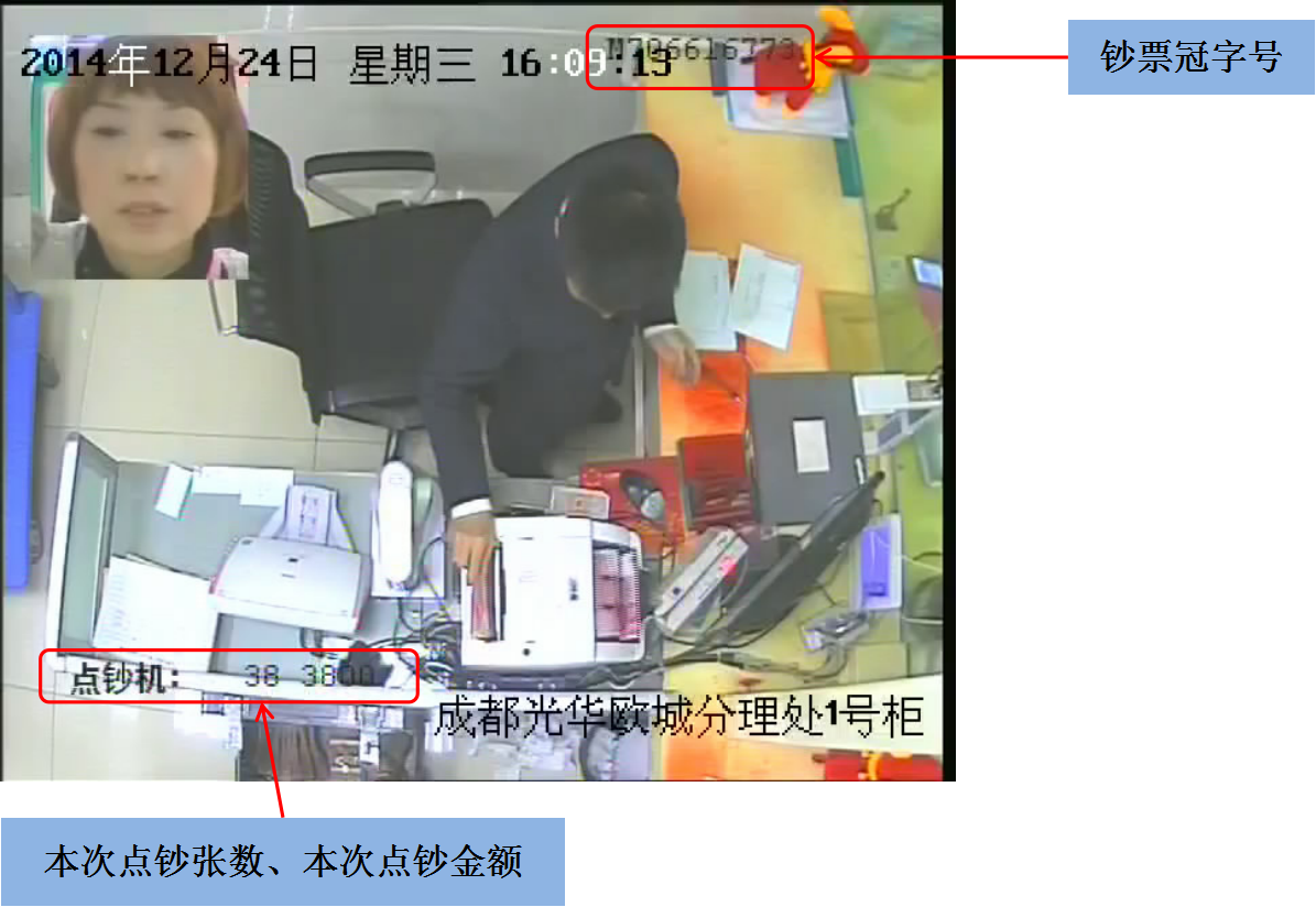 實(shí)時(shí)記錄點(diǎn)鈔數(shù)目,為業(yè)務(wù)糾紛提供明確證據(jù)。實(shí)時(shí)疊加卡號(hào)和身份證號(hào),清楚記錄顧客的身份信息。實(shí)時(shí)疊加鈔票冠字號(hào),實(shí)現(xiàn)現(xiàn)金走向的追溯性。