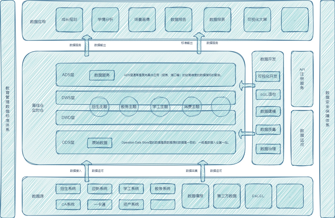 黨的二十大報(bào)告指出“推進(jìn)教育數(shù)字化,建設(shè)全民終身學(xué)習(xí)的學(xué)習(xí)型社會(huì)、學(xué)習(xí)型大國(guó)”。教育數(shù)字化是數(shù)字中國(guó)戰(zhàn)略的重要組成部分,是推動(dòng)教育強(qiáng)國(guó)建設(shè)的重要戰(zhàn)略支撐。教育部《關(guān)于加強(qiáng)新時(shí)代教育管理信息化工作的通知》指出要利用新一代信息技術(shù)提升教育管理數(shù)字化、網(wǎng)絡(luò)化、智能化水平,推動(dòng)教育決策由經(jīng)驗(yàn)驅(qū)動(dòng)向數(shù)據(jù)驅(qū)動(dòng)轉(zhuǎn)變、教育管理由單向管理向協(xié)同治理轉(zhuǎn)變、教育服務(wù)由被動(dòng)響應(yīng)向主動(dòng)服務(wù)轉(zhuǎn)變。國(guó)務(wù)院《“十四五”數(shù)字經(jīng)濟(jì)發(fā)展規(guī)劃》提出“深入推進(jìn)智慧教育”,強(qiáng)調(diào)推進(jìn)教育新型基礎(chǔ)設(shè)施建設(shè),深入推進(jìn)智慧教育示范區(qū)建設(shè),推動(dòng)“互聯(lián)網(wǎng)+教育”持續(xù)健康發(fā)展。《教育部2022 年工作要點(diǎn)》提出“實(shí)施教育數(shù)字化戰(zhàn)略行動(dòng)”,加快推進(jìn)教育數(shù)字化轉(zhuǎn)型與智能升級(jí)。數(shù)據(jù)體系建設(shè)是實(shí)現(xiàn)教育數(shù)字化戰(zhàn)略的核心內(nèi)容。
